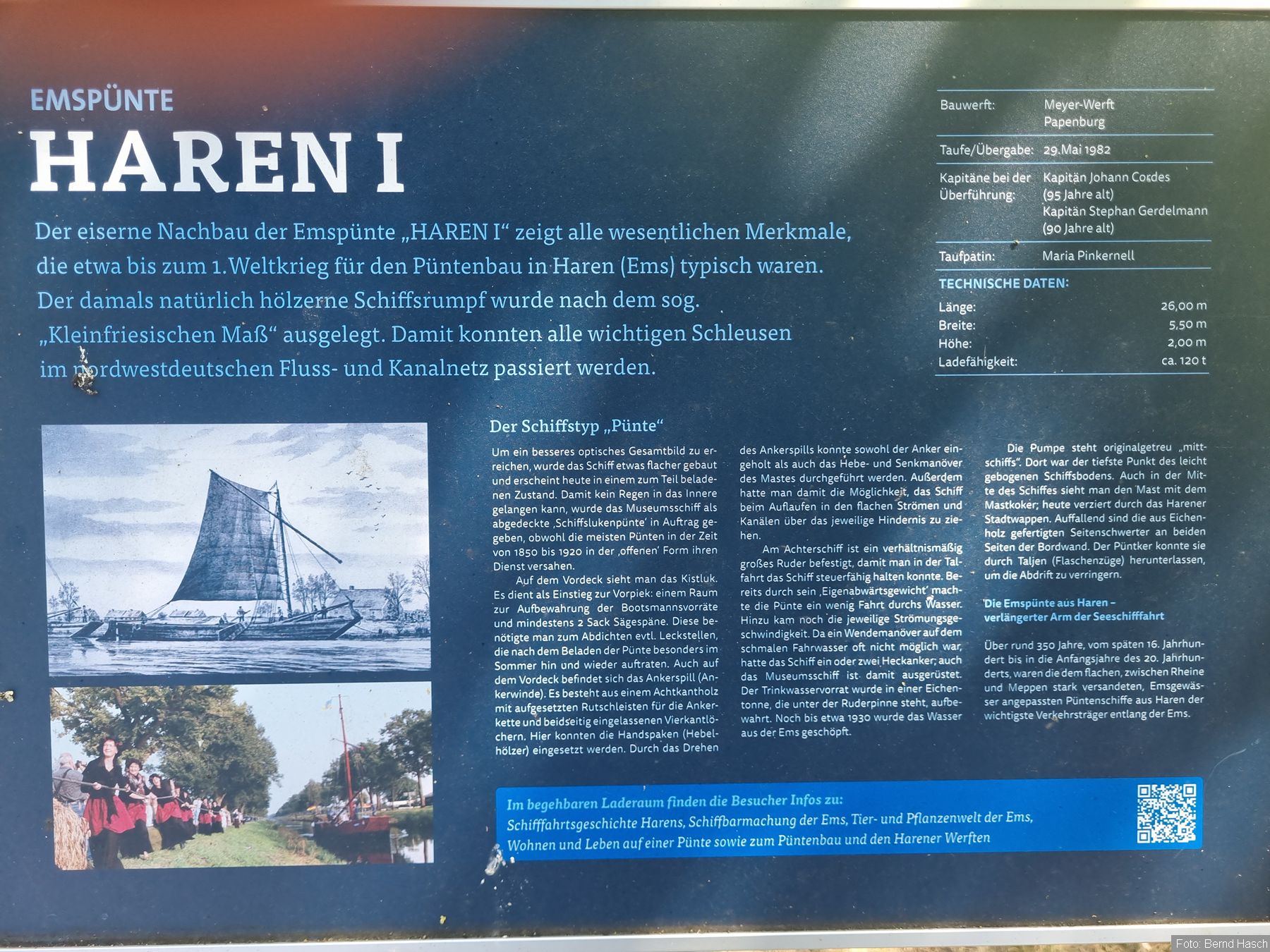 Der eiserne Nachbau der Pünte „Haren1“, ebenfalls in Papenburg entstanden, beherbergt z.B. alle wesentlichen Merkmale, die früher für den Püntenbau typisch waren.