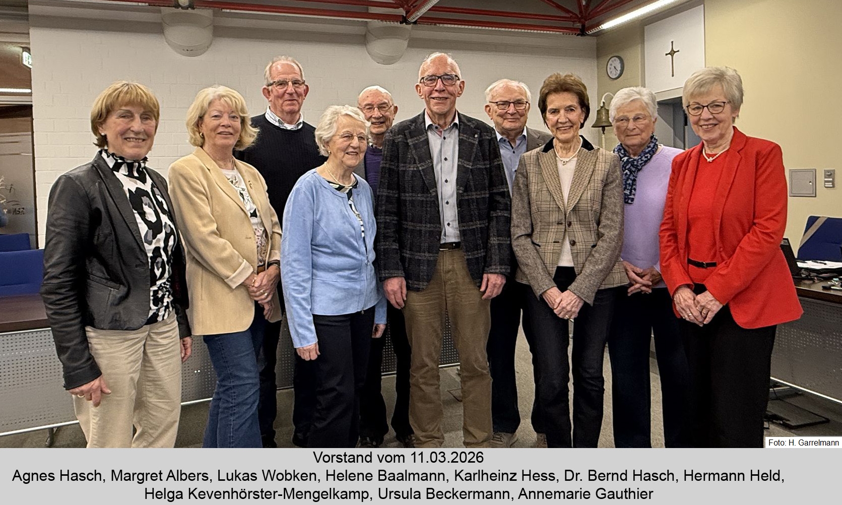 Anwesende: Ewald Middelberg, Hermann Held, Margret Albers, Dr. Bernd Hasch, Annemarie Gauthier, Helga Kevenhörster-Mengelkamp, Lenchen Baalmann, Karlheinz Hess, Ulla Beckermann, Agnes Hasch