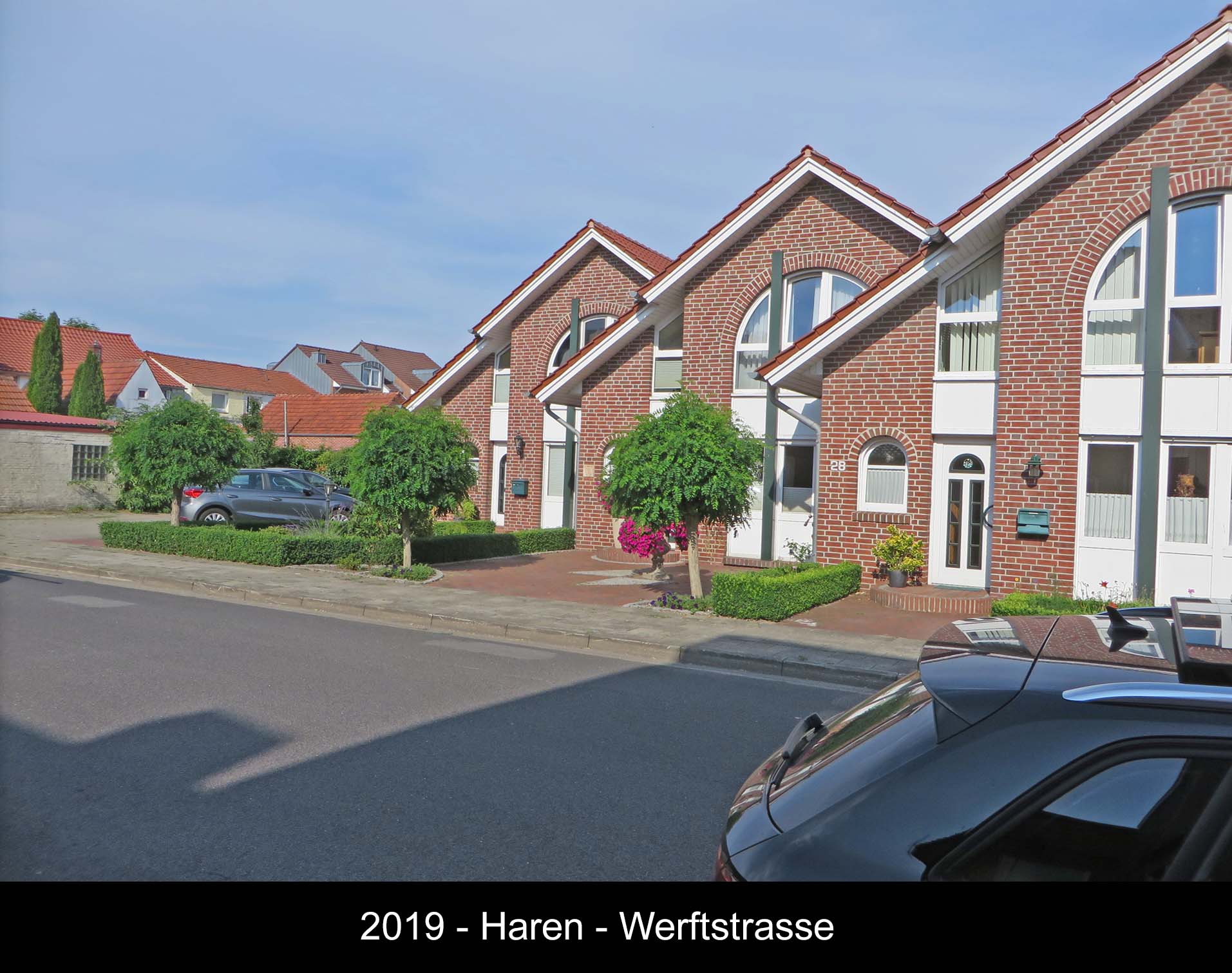 Die gleiche Gegend ist im Jahr 2019 / 2020 voll bebaut. In den ehemaligen Gärten (obere Bilder) stehen 2018 Einzel- und Reihenhäusern. Zudem ist eine neue Strasse gebaut worden: "Fürstenbergstrasse" (Bilder unten).