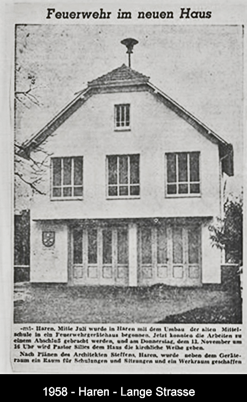 An der Lange Strasse - nicht weit vom damaligen Krankenhaus entfernt - stand früher das Gebäude der Volksschule, die 1929 in ihr neues Gebäude in der jetzigen Bischof-Demann-Strasse (spätere Martinischule) umzog. Die Rektoratsschule - spätere Mittelschule -, die bis dahin im Obergeschoss des Elisabeth-Kindergartens in der Kirchstrasse untergebracht war, nutzte danach ab 1929 das Gebäude der ehemaligen Volksschule (siehe Bilder unten). Nach ihrem Umzug 1957 in ihr neues Gebäude am Haren-Rütenbrock-Kanal, dem späteren Schulzentrum, wurde 1958 das vordere Haus abgerissen und zur Zufahrt zum hinteren Gebäude, das zum Feuerwehrgerätehaus umgebaut wurde. Nachdem 1977 die Feuerwehr in ihr neues Gerätehaus in der Werftstrasse umgezogen war, wurde auch dieses alte Gebäude abgerissen und es entstand so ca. 1986 der Kolpingplatz.