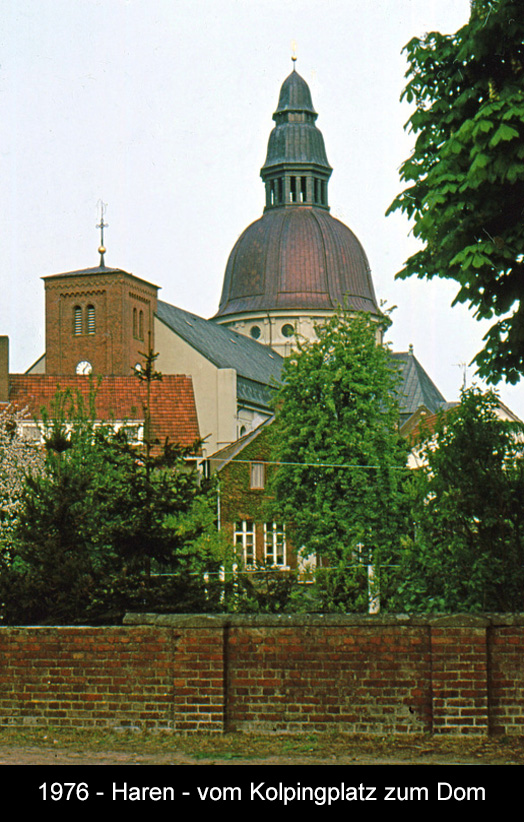 Der Kolpingplatz entstand erst ca. 1986. Er verläuft von der Lange Strasse in Höhe des Martinus-Pfarramtes nach Süden, begrenzt die Bischof-Demann-Strasse und endet in Höhe der Adler-Apotheke in der Kirchstrasse. Die Bilder oben zeigen den Platz in den 1960er vor und in den 1970er Jahren nach Abriss des alten Feuerwehrhauses. In dem grossen Gebäude hinter der Volksbank befand sich 1978 noch der erste Discount-Markt in Haren (Penny-Markt, siehe Bilder oben), der später abgerissen wurde. Der Kolpingplatz hat seine ganz eigene Geschichte.