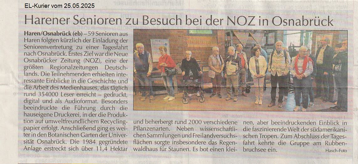 13.05.2025: Tagesfahrt nach Osnabrück, Besuch der NOZ und des Botanischen Gartens